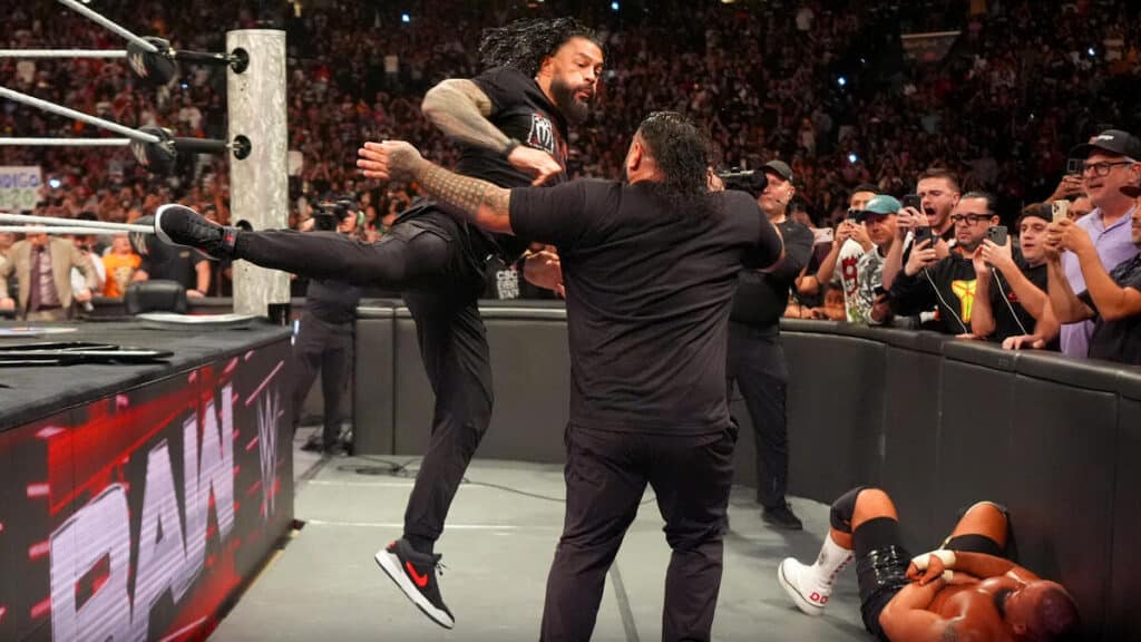 وصل رومان رينز ، مما سمح لجي Uso بالضرب لبقع USO على Breakker عبر الطاولة ، مما يعطي Uso الفوز الكبير.