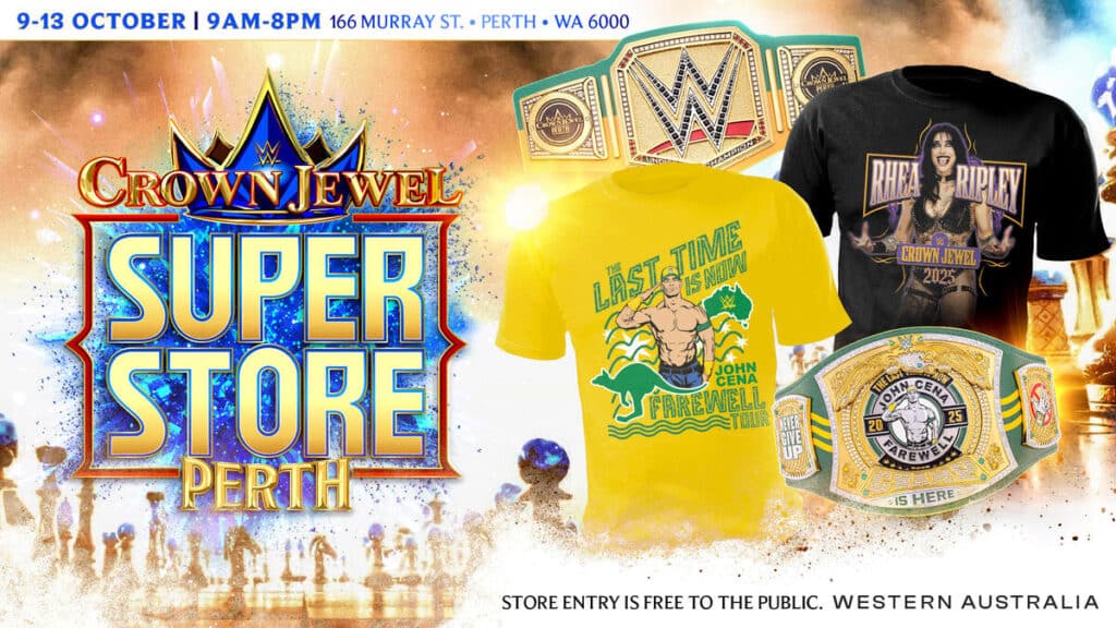 سيأتي متجر WWE Crown Jewel Superstore الرسمي إلى بيرث، أستراليا الغربية في الفترة من 9 أكتوبر إلى 13 أكتوبر. تسوق في أكبر مجموعة من بضائع Crown Jewel تحت سقف واحد.