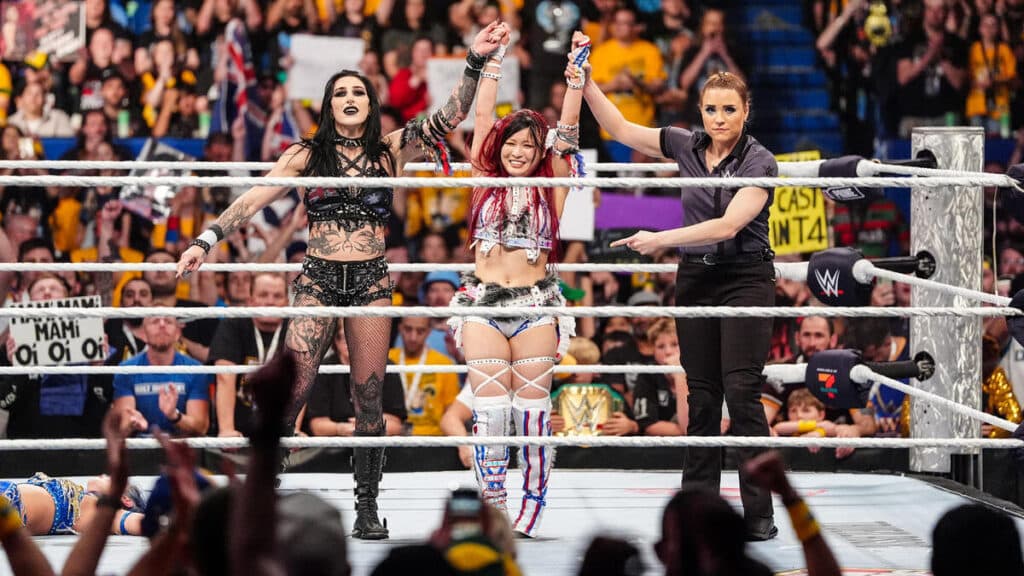 ريا ريبلي & IYO SKY تغلب. أسكا وكايري ساني (نتائج | فيديو | الصور)