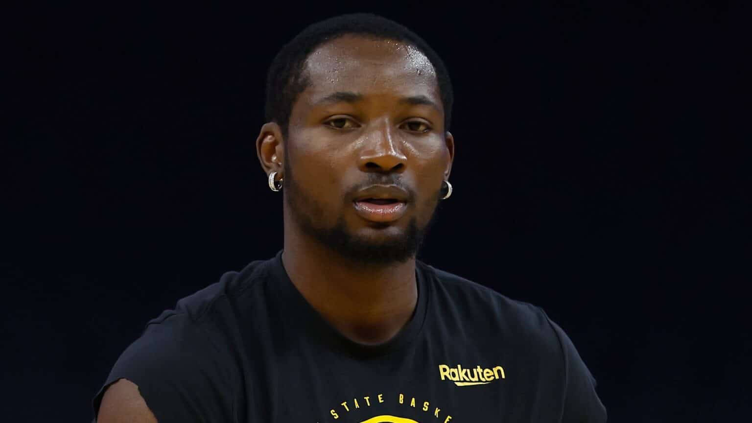 يقوم لاعب فريق ووريورز جوناثان كومينجا بالإحماء قبل مباراة الفريق ضد بورتلاند في 8 أكتوبر.