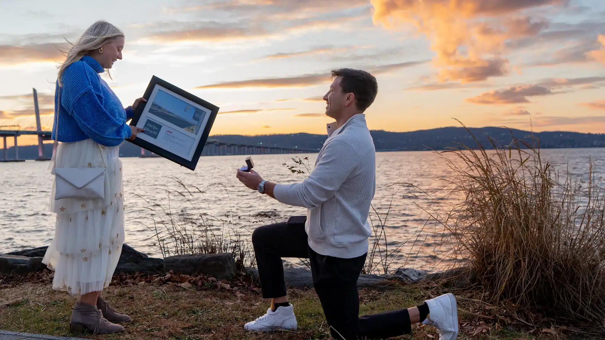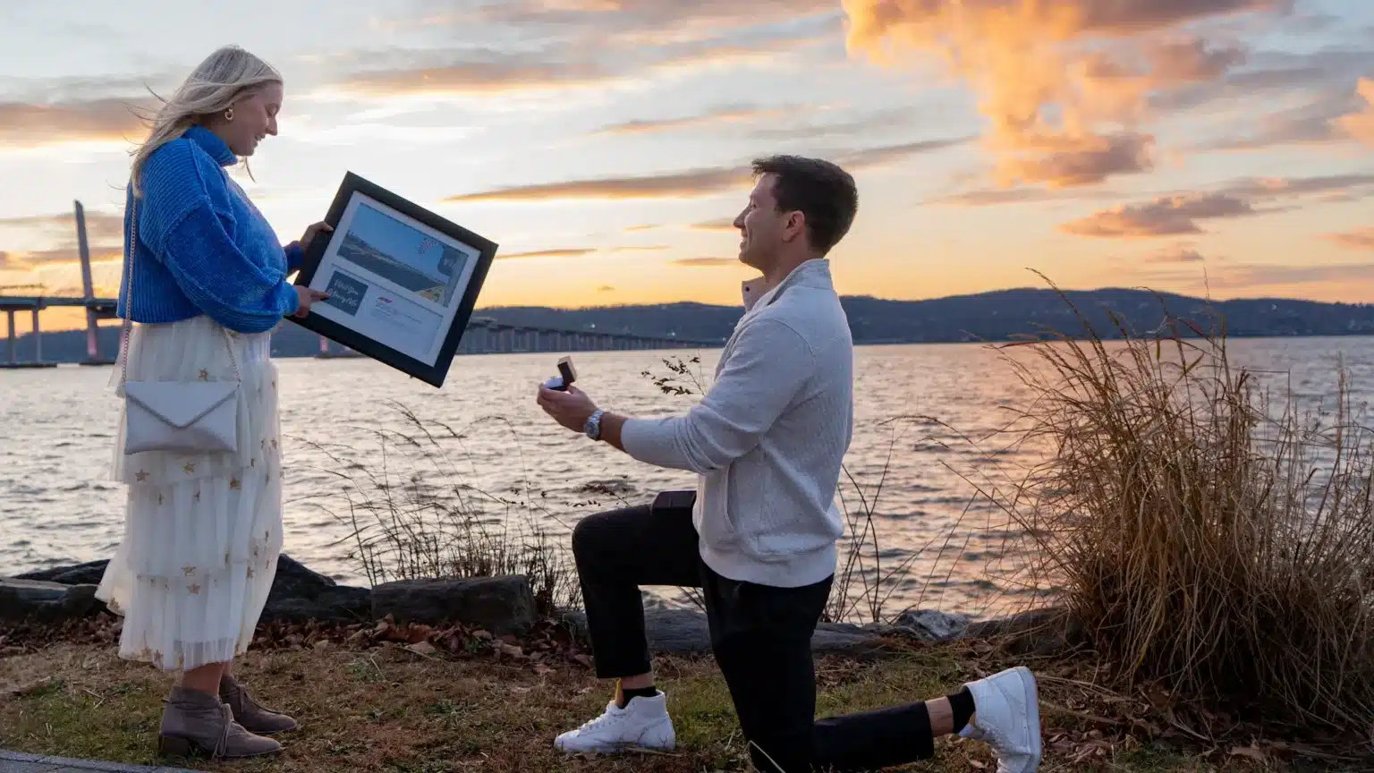بمجرد وصول الإطار الذي يحتوي على سؤاله المهم للغاية، قام جيك بتخزينه سرًا بأمان حتى ركع على ركبة واحدة وفاجأ جيناماري بهديتها. أثمرت جهود جيك بأفضل الأخبار على الإطلاق – قالت نعم!