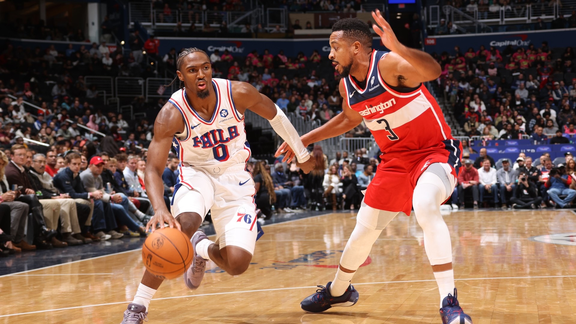 ثانيًا، يلعب Maxey وVJ Edgecombe دقائق كثيرة جدًا. يوم الثلاثاء، لعب ماكسي 47 دقيقة، في الليلة الثانية من المواجهة المتتالية… في أكتوبر. لعب Edgecombe 39 دقيقة و59 ثانية، أي 40 دقيقة. لعب أوبري ما يقرب من 44 دقيقة.