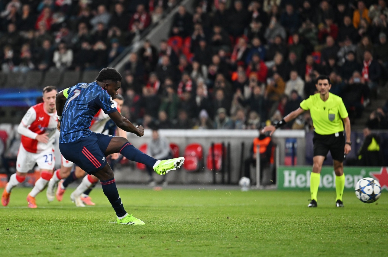 بدأ سلافيا بقوة، لكن أرسنال كان هادئًا، حيث اقترب غابرييل ماجالهايس مبكرًا واختبر بوكايو ساكا جاكوب ماركوفيتش مرتين. في الدقيقة 30، سجل ساكا ركلة جزاء بعد أن ارتطمت رأسية جابرييل بيد لوكاس بروفود، وهو ما أكده حكم الفيديو المساعد.